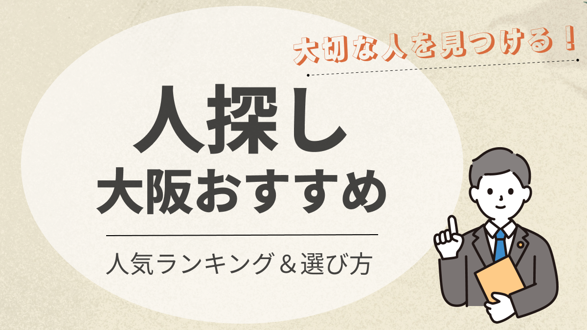 大阪でおすすめの人探し調査の探偵事務所ランキング20選をご紹介。大切な人を探すお手伝いをしてくれる、信頼できる探偵事務所をピックアップしています。