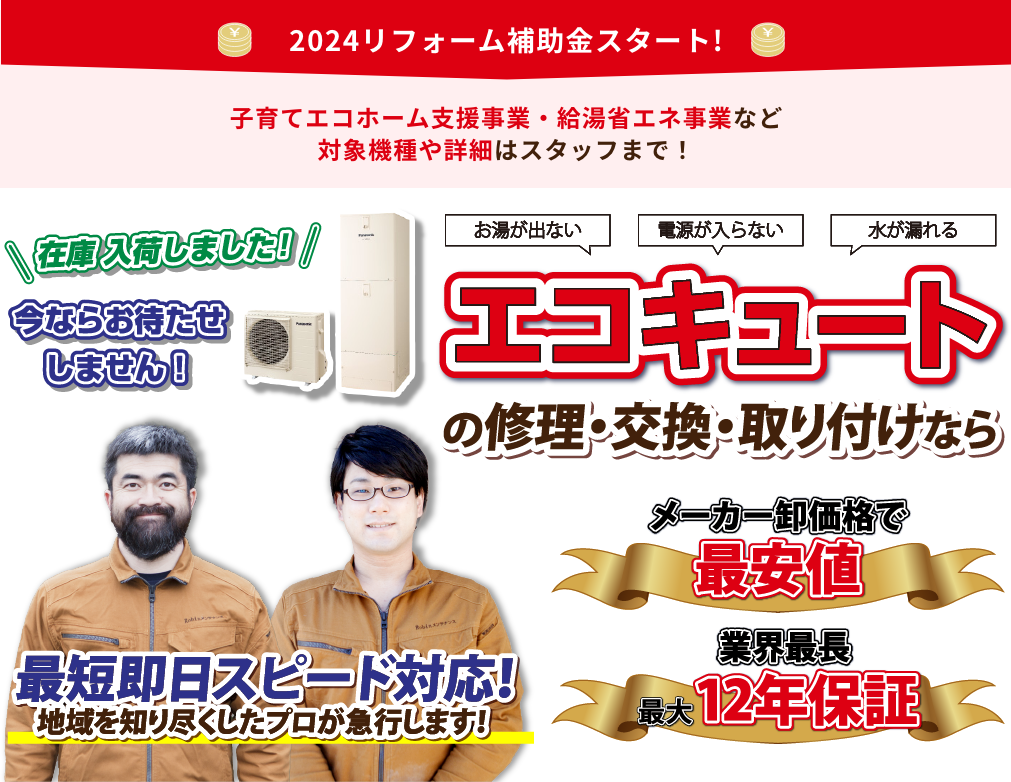 | 給湯省エネ2025事業 | 全国 | 補助対象のエコキュート、ハイブリッド給湯機、エネファームを導入する際、費用の一部を定額で補助 |