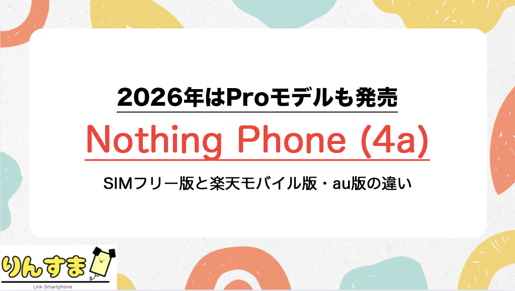 Nothing Phone (4a)と(4a) ProのSIMフリー版と楽天モバイル版・au版の違いを比較。