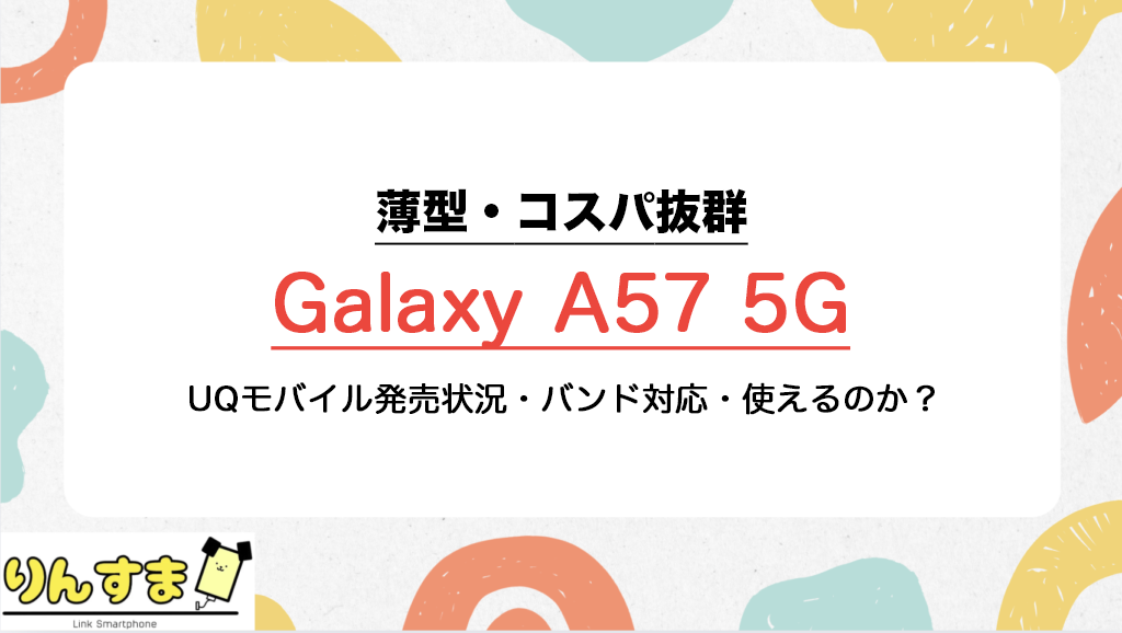 - UQモバイルでGalaxy A57 5Gが発売される予定はない